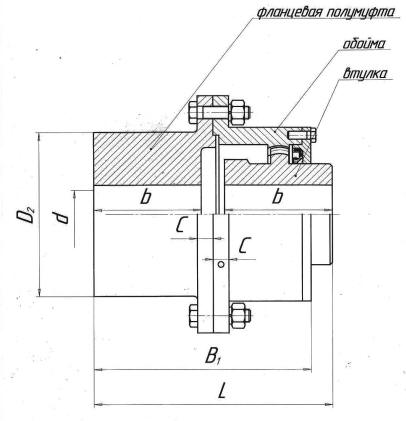 Компенсация смещений валов достигается относительным перекосом втулок и обойм за счет боковых зазоров между зубьями и выполнения поверхности выступов зубьев втулок сферической. Перекос оси каждой втулки относительно оси обоймы — не более 1°30′